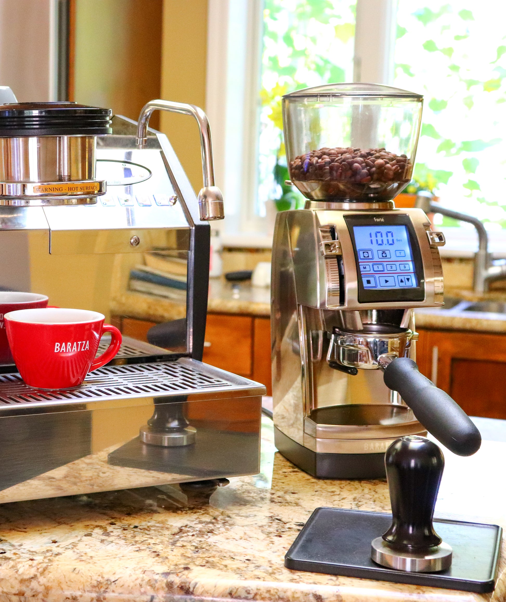 Designed as a commercial solution for low-volume cafes, the Forté AP is a rock-solid espresso grinder with high-capacity and feature-density. Operated by a touch screen, the Forte AP has two grind modes: by time and by weight. Each of those modes carries three presets and a manual option, giving you plenty of ways to conveniently switch from one dose to another. Grind by weight on the Forté does not work with the included portafilter holder accessory, though in exchange you get convenient coffee delivery into a portafilter as well as reduced mess thanks to a funnel which guides coffee grounds into the basket. This machine is a great choice for highly consistent espresso at home, although it’s better suited to commercial use. If you have dreams of opening a coffee shop, the Forté AP can help make those dreams come true. Its small footprint, multifunction touch screen, high daily capacity (5lbs per day) and sturdy grind size adjustments make the Forté AP a great choice for low-volume espresso in the café like decaf or single-origin offerings. It is built with 54mm flat ceramic burrs, engineered to produce an accurate and precise grind, delivering exceptional cup quality for brew methods from espresso to French Press. Included with every Forté are a shut-off hopper, a burr removal tool for easy cleaning, and a simple burr calibration tool for quick QC calibration. “Pillowy grinds and pillow talk – this grinder will wake you up in the morning and keep you up all night.” – Sprudge: “2013 Sexiest Coffee Grinder Alive”