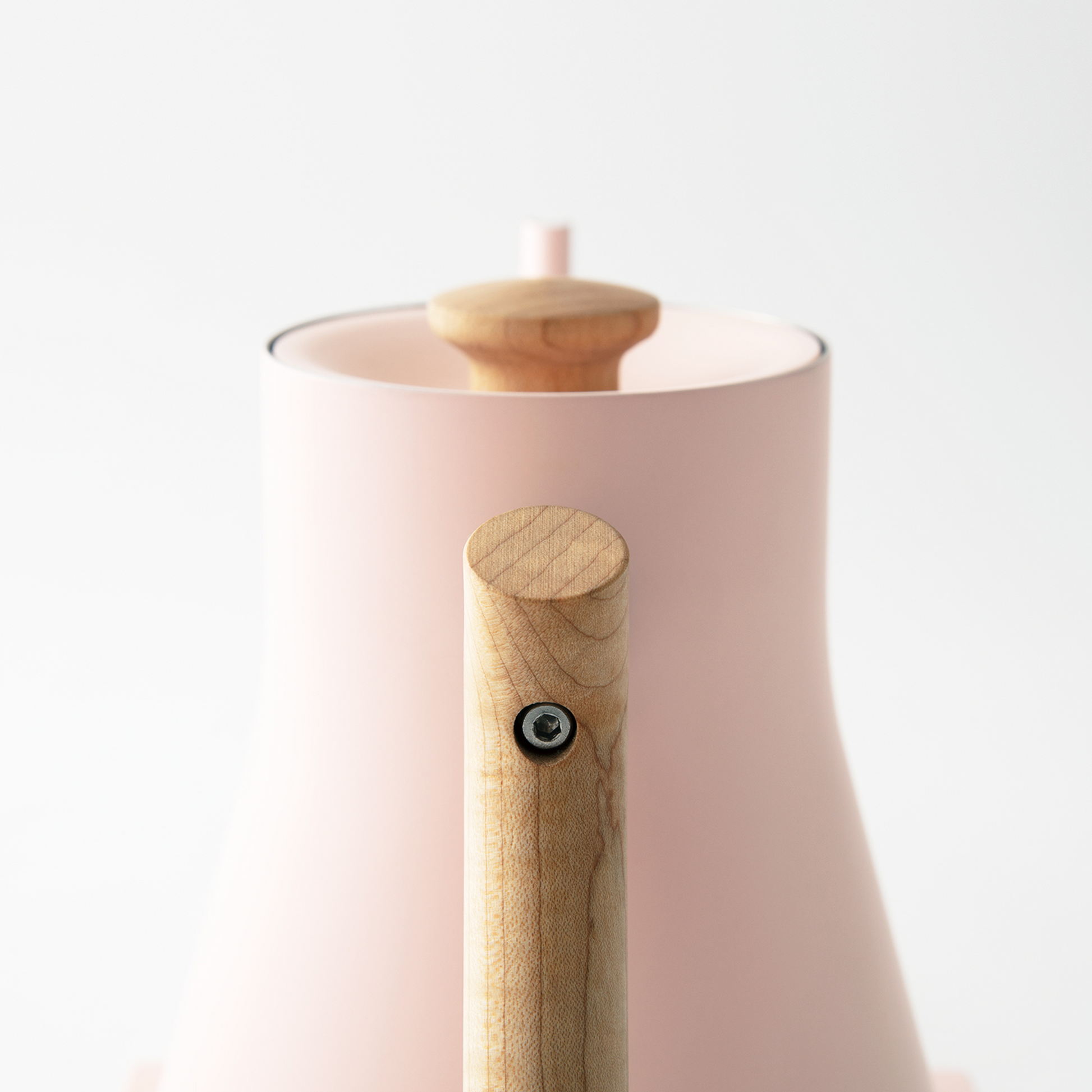 Materials: 304 stainless steel kettle body and lid, plastic base. Wooden handles are either walnut or maple. Please read the following article for wood care instructions.
